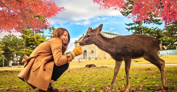 Công viên Nara – Điểm đặc biệt của công viên này là có rất nhiều hươu, nai hoang dã sinh sống tự do đi lại. Theo truyền thống Thần Đạo – Tôn giáo phổ biển ở Nhật Bản, Hươu được coi là sứ giả của thần linh nên đàn hươu hơn 1.000 con ở Nara không chỉ là biểu tượng của thành phố mà còn được đăng ký tài sản quốc gia.
