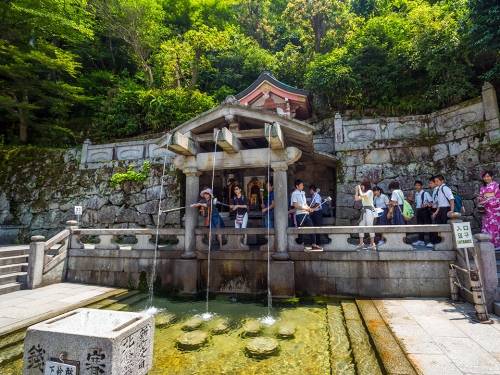 Kyoto là một thành phố cổ đúng nghĩa khi không thấy bóng dáng của những tòa nhà chọc trời, những công trình hiện đại mà thay vào đó là rất nhiều di tích lịch sử, văn hóa. Chuyến du lịch sẽ đưa bạn đến với chùa Thanh Thủy (Kiyomizu Dera) - ngôi chùa rất nổi tiếng, được bao quanh bởi vô số cây maple và hoa anh đào. Trong khuôn viên chùa có suối nước Otowa với ba dòng nước: trường thọ, đỗ đạt và hạnh phúc. Bạn có thể uống nước của một trong ba dòng nhưng không nên uống nước của cả ba vì sẽ bị coi là tham lam.