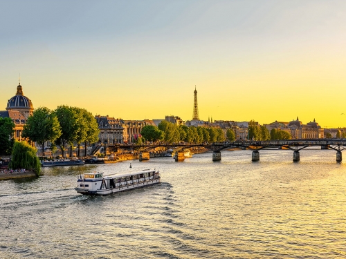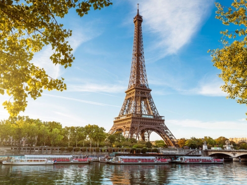 Điểm dừng chân đầu tiên trong chuyến du lịch là Paris (Pháp) chắc chắn sẽ làm hài lòng những trái tim đam mê du lịch. Một thành phố diễm lệ, phồn hoa với những công trình kiến trúc đậm tính lịch sử; một "kinh đô ánh sáng" với các thương hiệu thời trang cao cấp; nơi khởi nguồn của những câu chuyện tình lãng mạn. Những điều đó dường như vẫn chưa đủ để nói về một nước Pháp. Đến đây, ai mà lại có thể bỏ qua cơ hội chiêm ngưỡng tháp Eiffel - kì quan kiến trúc tuyệt đẹp của thế giới. Từ trên đỉnh tháp, du khách có thể chiêm ngưỡng toàn cảnh thành phố Paris tráng lệ bên dòng sông Seine lững lờ. Đặc biệt, khi hoàng hôn buông xuống, du khách sẽ choáng ngợp đến lặng người trước khung cảnh lãng mạn đến say lòng của Paris.