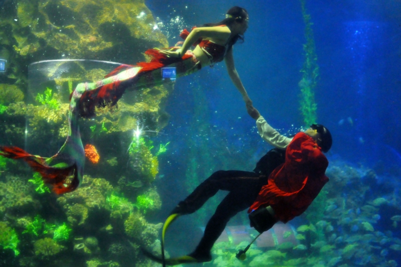• Thủy cung: di chuyển bằng hệ thống thang cuốn để khám phá Thủy Cung và chiêm ngưỡng các loài sinh vật biển trong lòng đường hầm hiện đại, Quý khách sẽ có cảm giác như đang được du ngoạn dưới đáy đại dương, và vui đùa cùng muôn vàn loài sinh vật biển rực rỡ sắc màu. Thưởng thức 2 chương trình biểu diễn đặc sắc “nàng tiên cá” và “cho cá ăn”